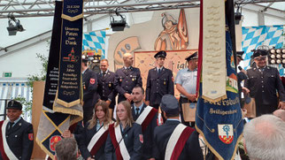 Heute besuchten wir das Feuerwehrfest in Konstein und beteiligten uns mit Fahne und Festdamen am Festumzug.