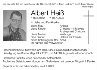 19.07.2025 Albert Heiß verstirbt im Alter von 62 Jahren